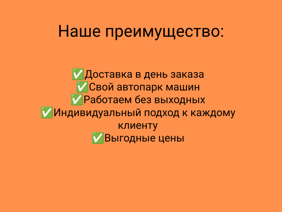 Наша компания располагает собственным автопарком, поэтому у нас самая быстрая доставка